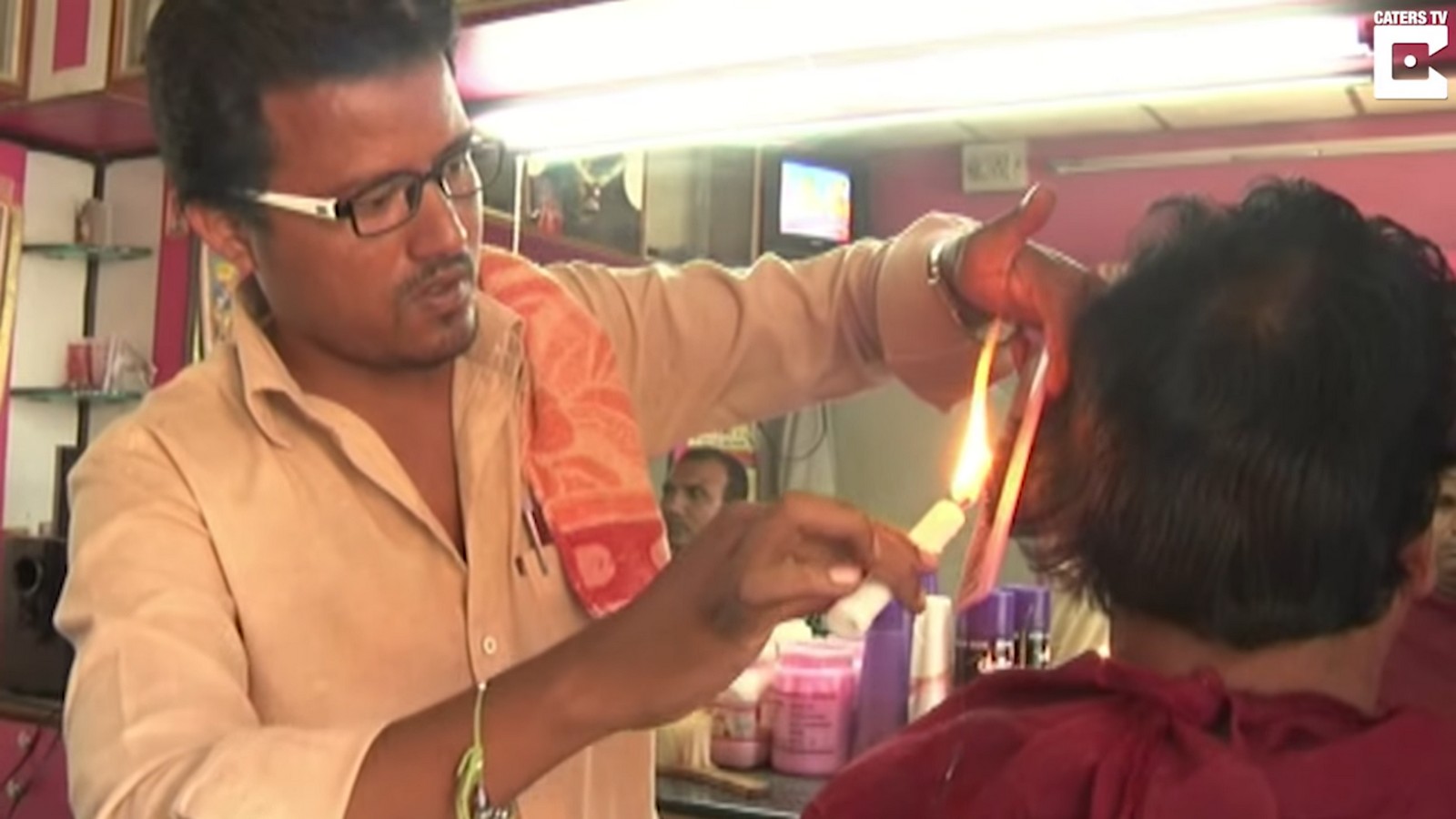 Místo nůžek plamen svíčky: Originální kadeřnická technika mladého Inda