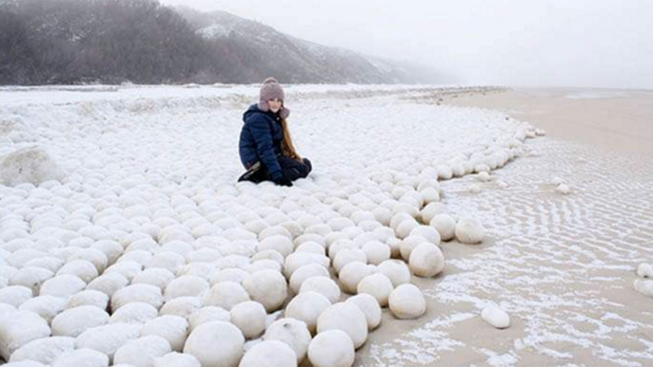 Na sibiřské pláži se objevily tisíce obřích sněhových koulí
