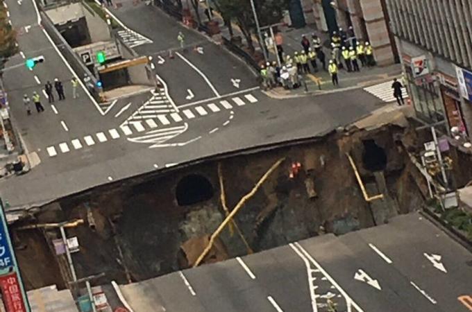 Obří závrt v největším městě na japonském ostrově Kjúšú