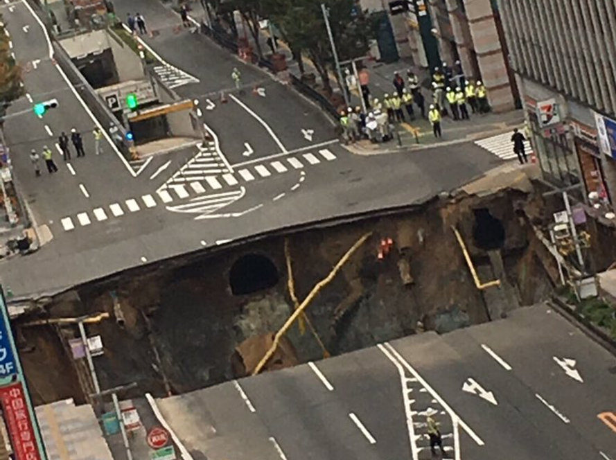 Obří závrt v největším městě na japonském ostrově Kjúšú