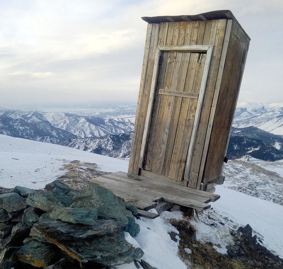 Na první pohled vypadá dost chatrně. Dřevěná kadibudka na meteorologické stanici v Kara-Tyurek je zřejmě neizolovanější toaletou na světě.