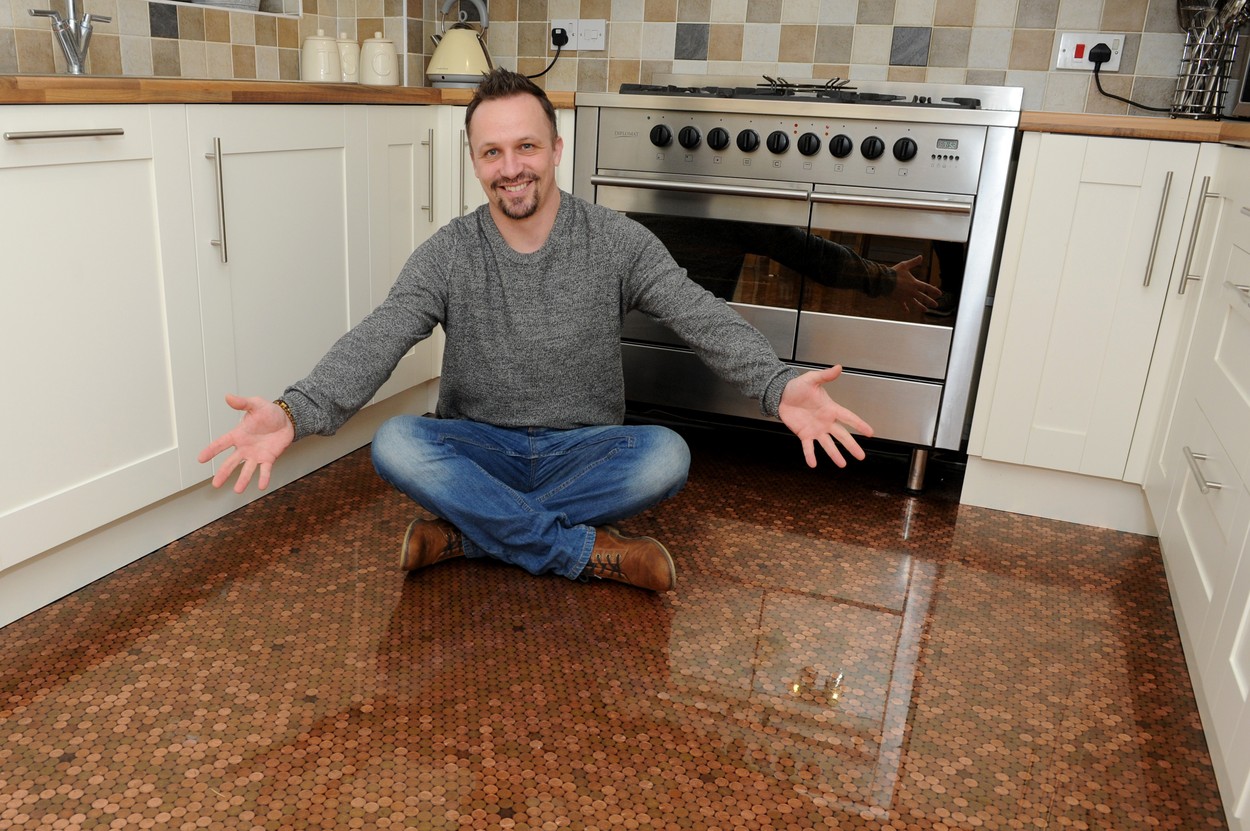 Brit si vydláždil kuchyň 27 tisíci mincemi