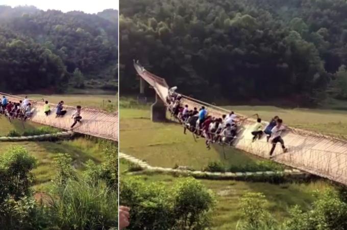 Drama na mostě: Dřevěná lávka nevydržela nápor čínských turistů