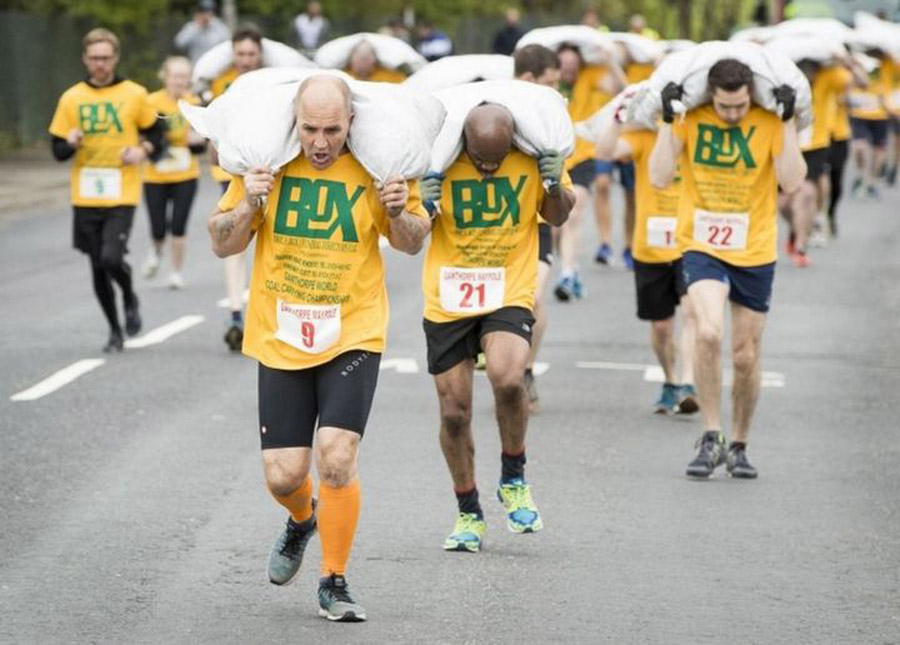 S pytlem na zádech: V britském Gawthorpe proběhl 54. ročník bláznivého závodu