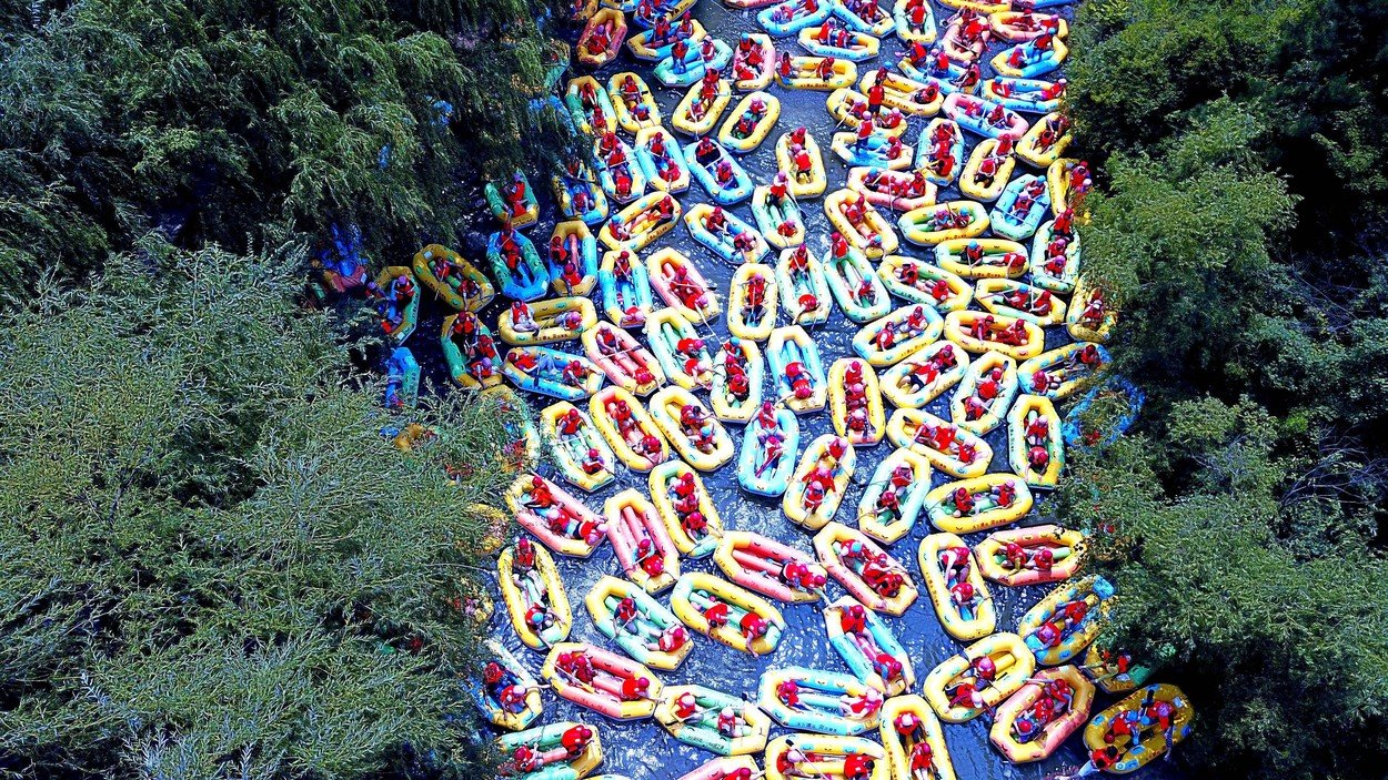 Čínská střediska nabízející jízdu na raftech kolabují pod náporem zájemců