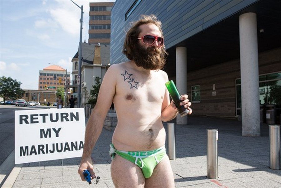 Američan protestuje před policejní stanicí: Vraťte mi mou trávu!