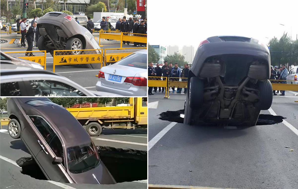 Bez varování: Luxusní Rolls-Royce skončil v silničním závrtu