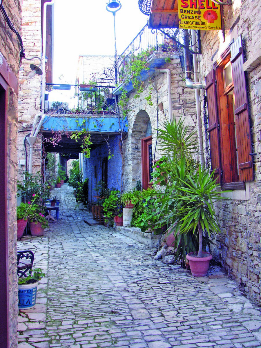 Ulička ve městě Levkara. Místní si velice potrpí na tradice a zachování starého rázu ulic.