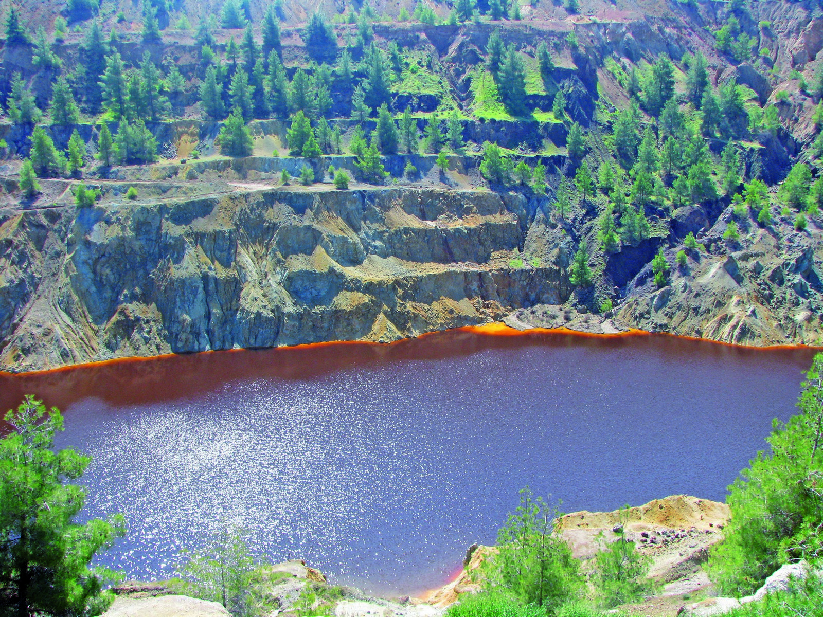 Pozůstatky málo známého měděného dolu v Micero. Většina turistů sytě rudou vodu nikdy neobjeví.
