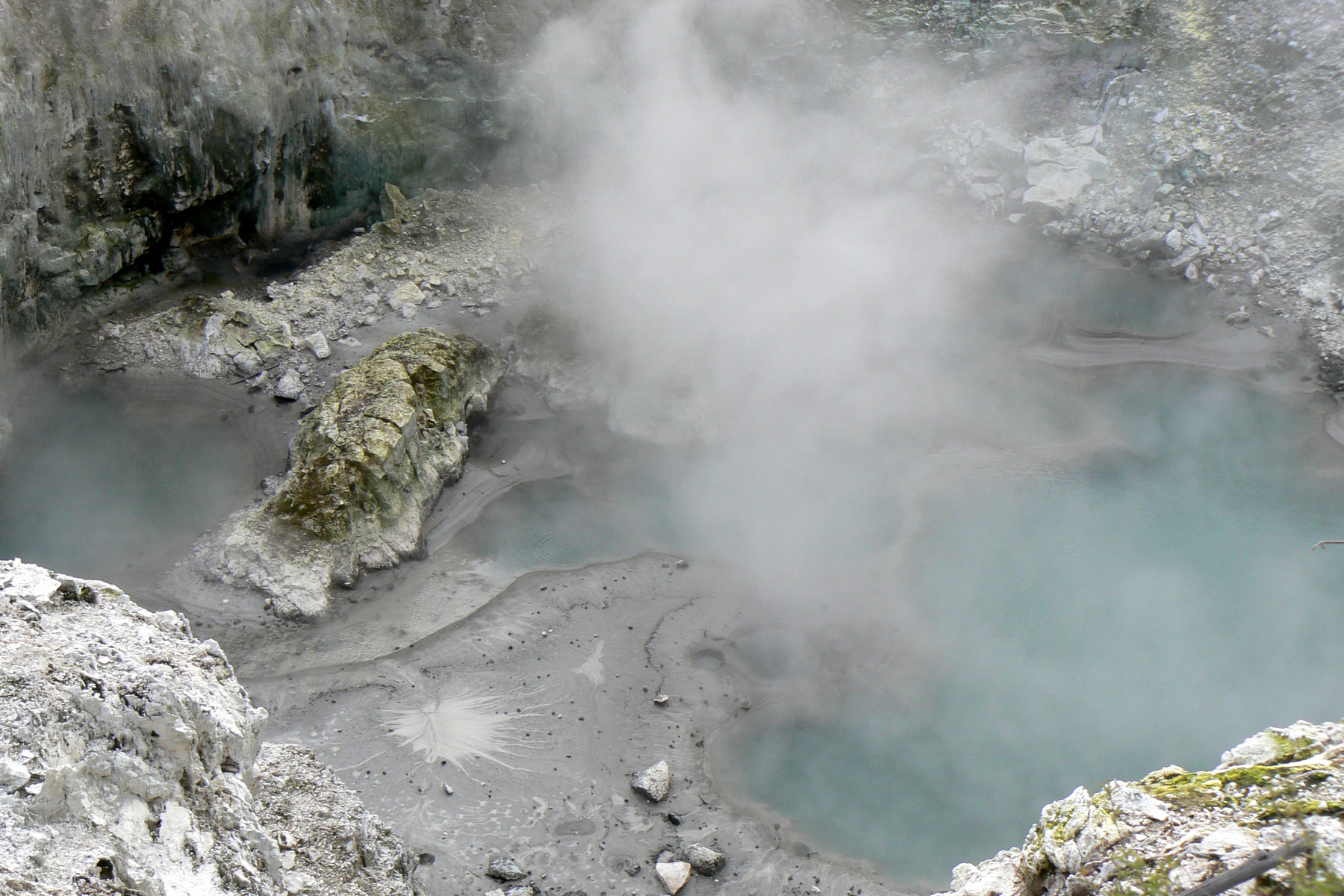 Neustálá podzemní aktivita je v termální oblasti Wai-O-Tapu vidět na každém kroku.