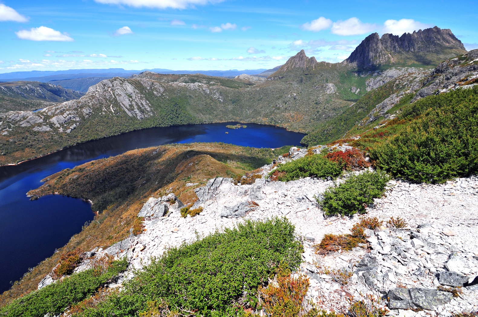 Jezero Dove lake a hora Cradle mountain patří k největším turistickým atrakcím.