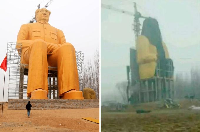 Zlatá socha diktátora Mao Ce-tunga už je zase zbouraná