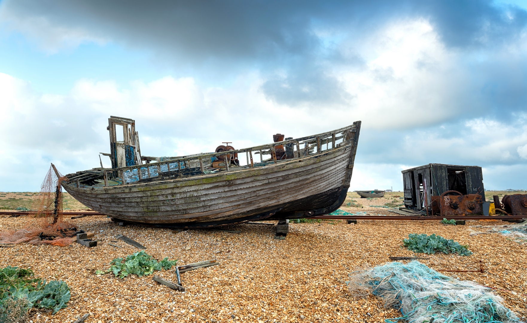 I díky vrakům lodí působí oblast Dungeness jako svět po apokalypse.