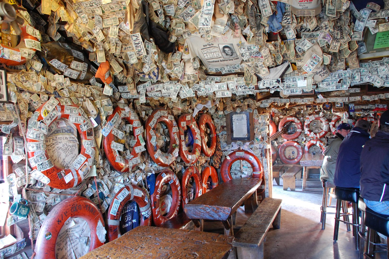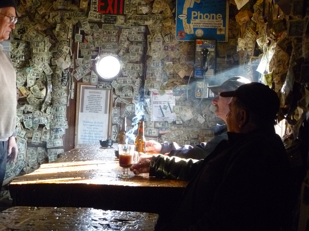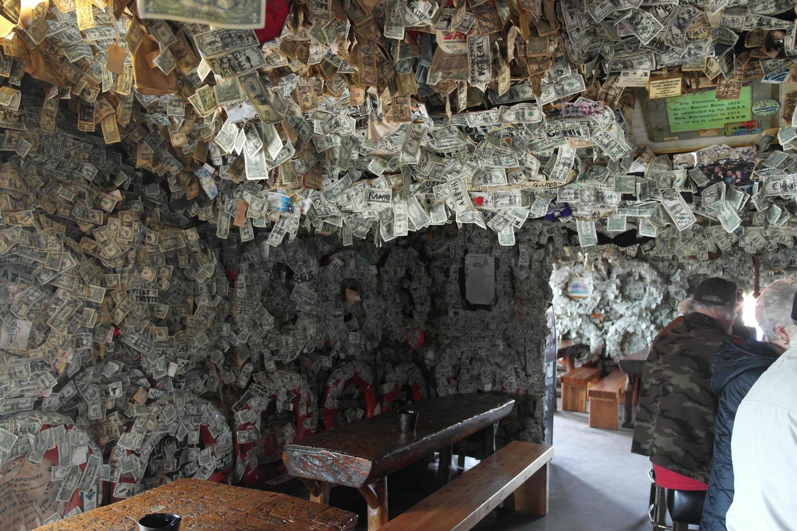 Zdání klame: Zaplivaný aljašský bar je vytapetovaný dolarovými bankovkami