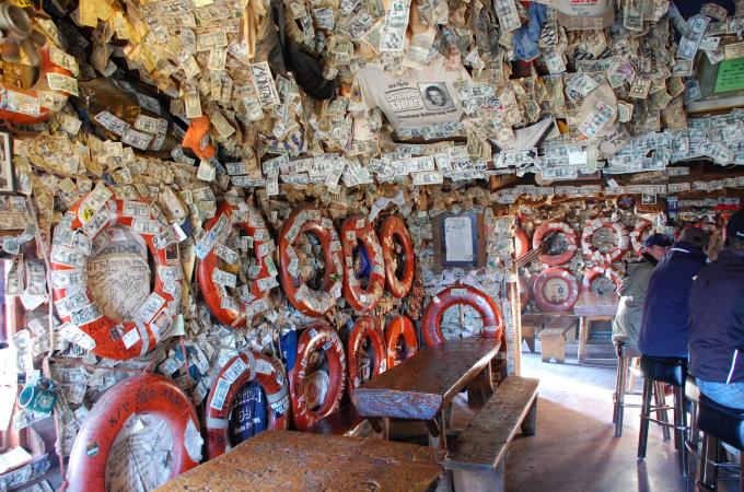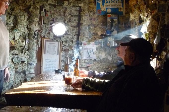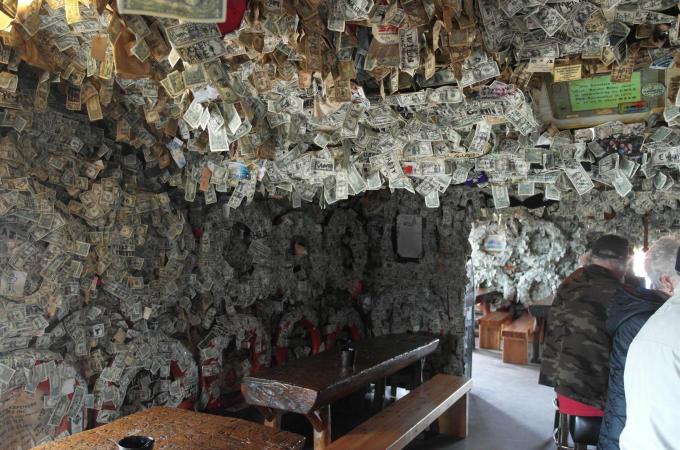 Zdání klame: Zaplivaný aljašský bar je vytapetovaný dolarovými bankovkami