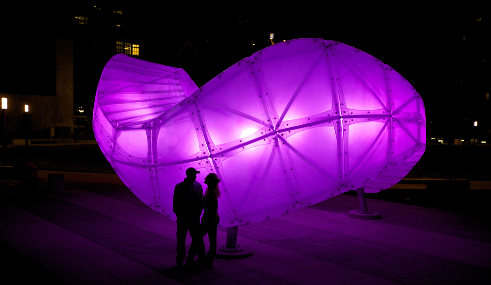 Interaktivní svítící skulptura: Inspirací byly mraky nad městem Calgary