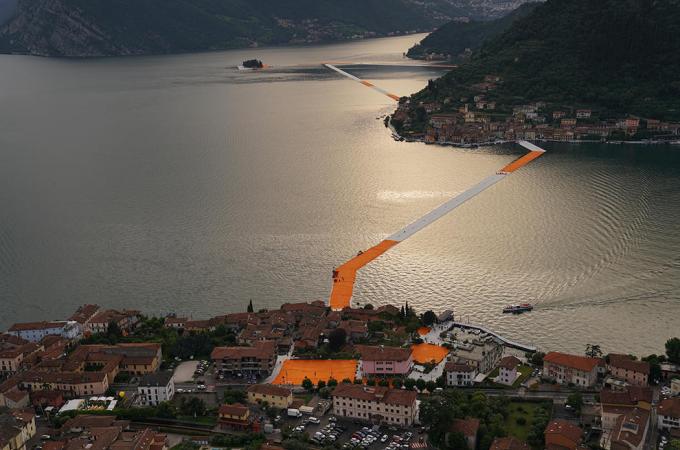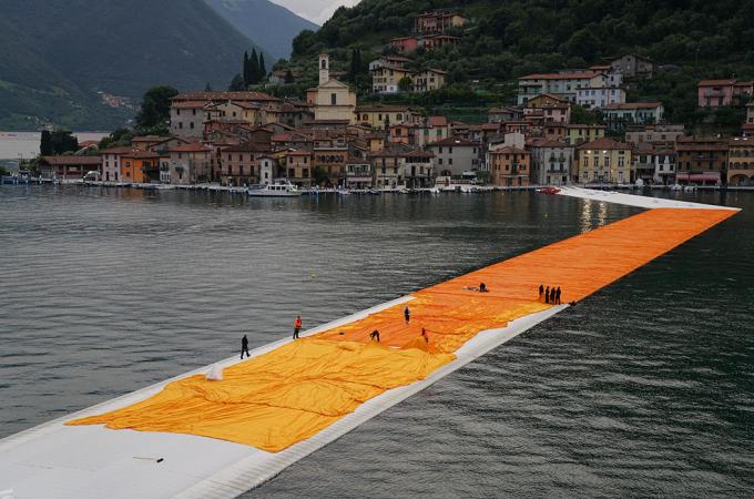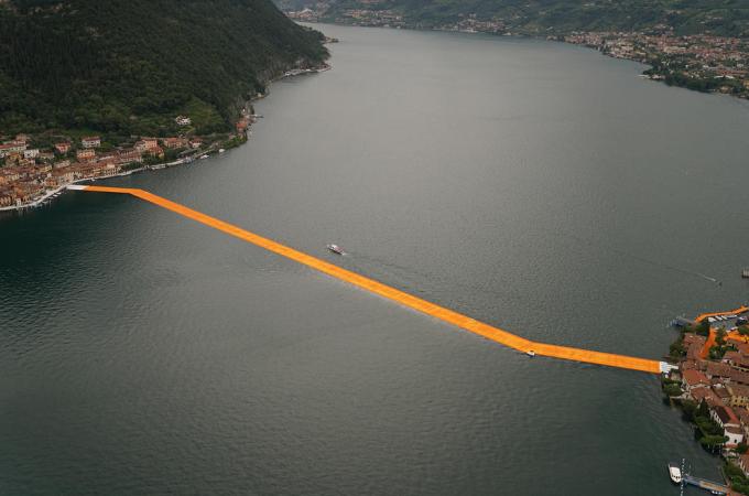 Suchou nohou přes hladinu jezera: 220 tisíc plovoucích kostek propojilo italské ostrůvky