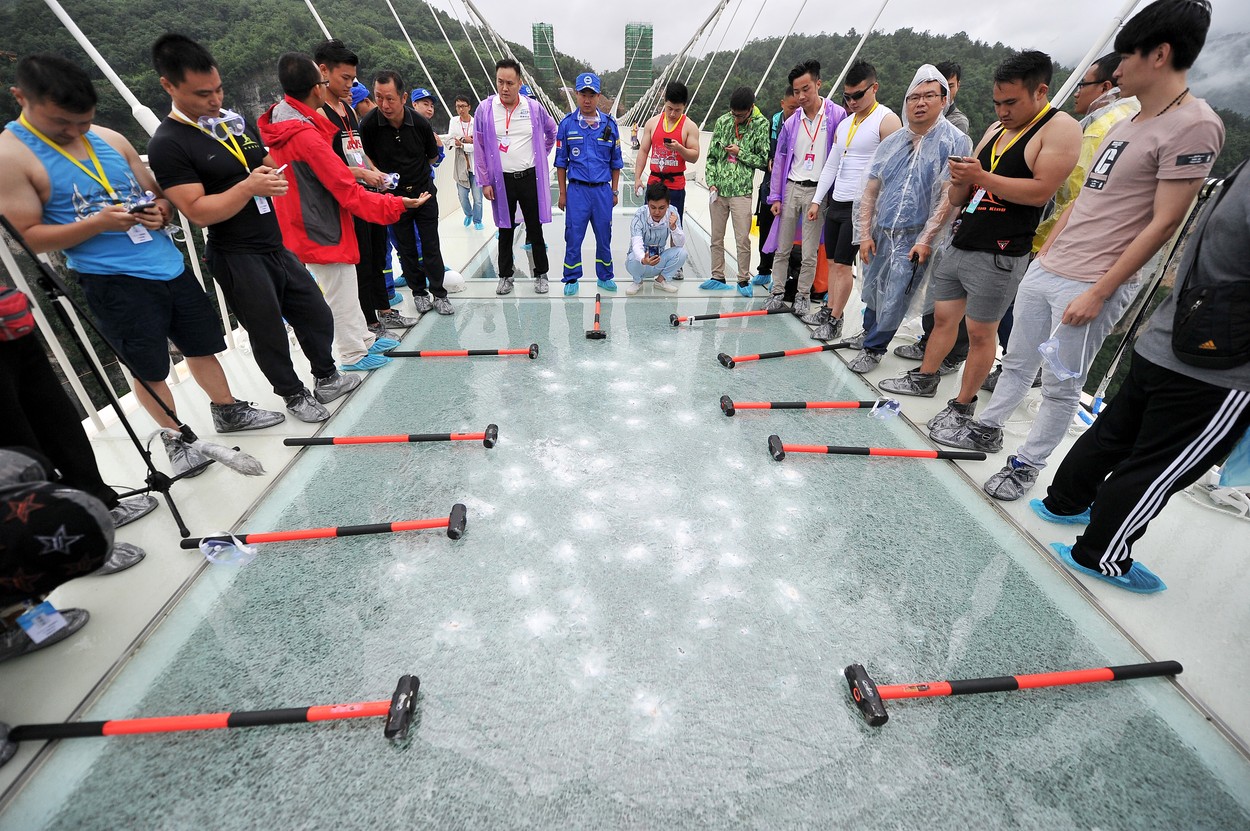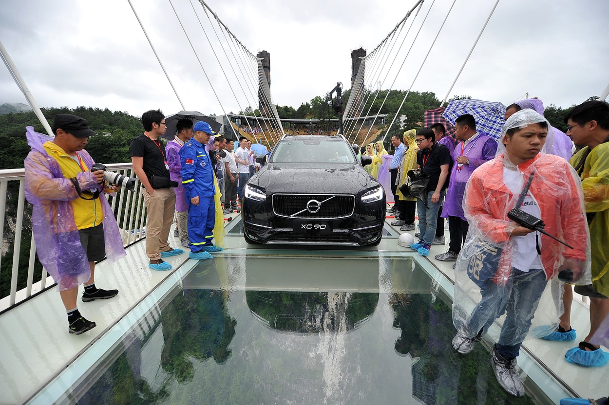 Rány kladivem i jedoucí auto: Originální zatěžkávací zkouška skleněného mostu