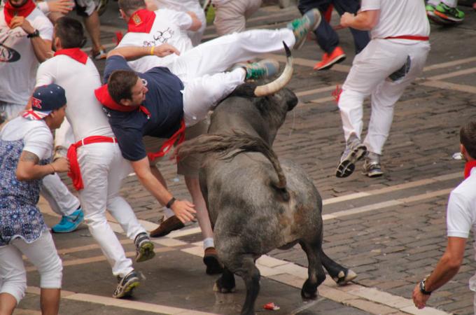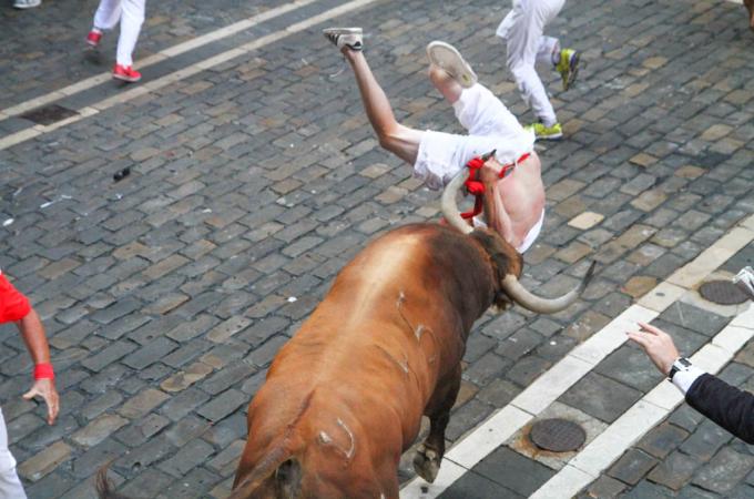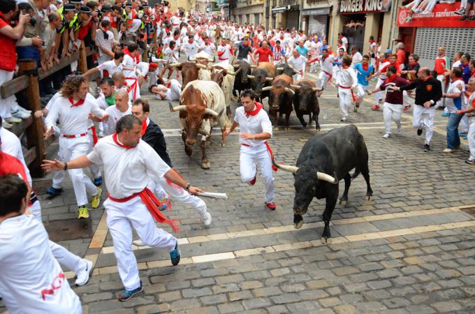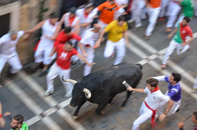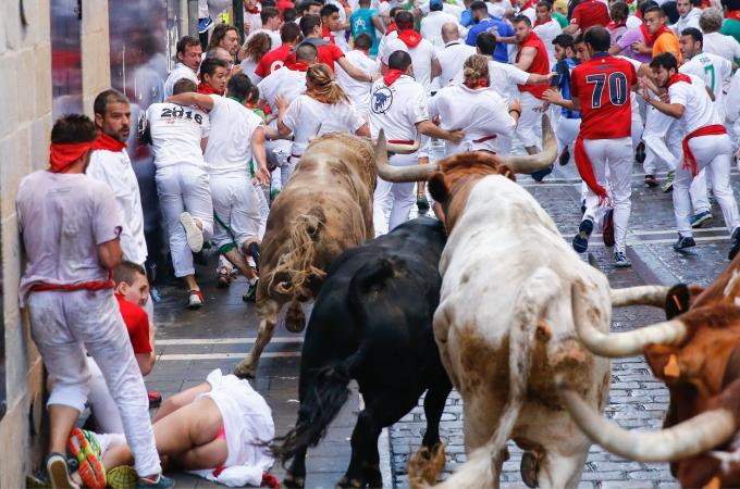 Dusot kopyt a krev na dlažbě: V Pamploně odstartoval běh s býky