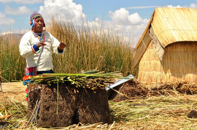 Lid plovoucích ostrovů z jezera Titicaca