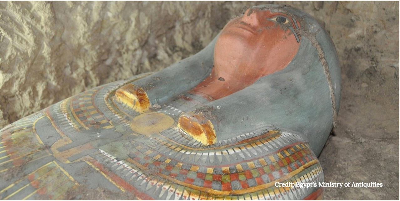 Mumie, která byla uložena v pestrobarevném dřevěném sarkofágu, pravděpodobně patří muži jménem Amenrenef.