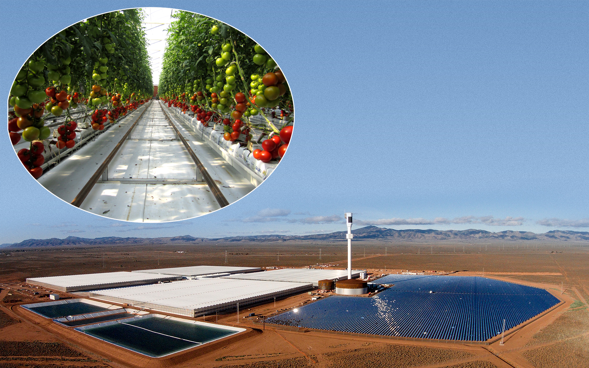 Farma Sundrop si vyrobí energii i sladkou vodu pro veškerý svůj provoz. Rajčata se zde pěstují na substrátu z kokosových vláken.
