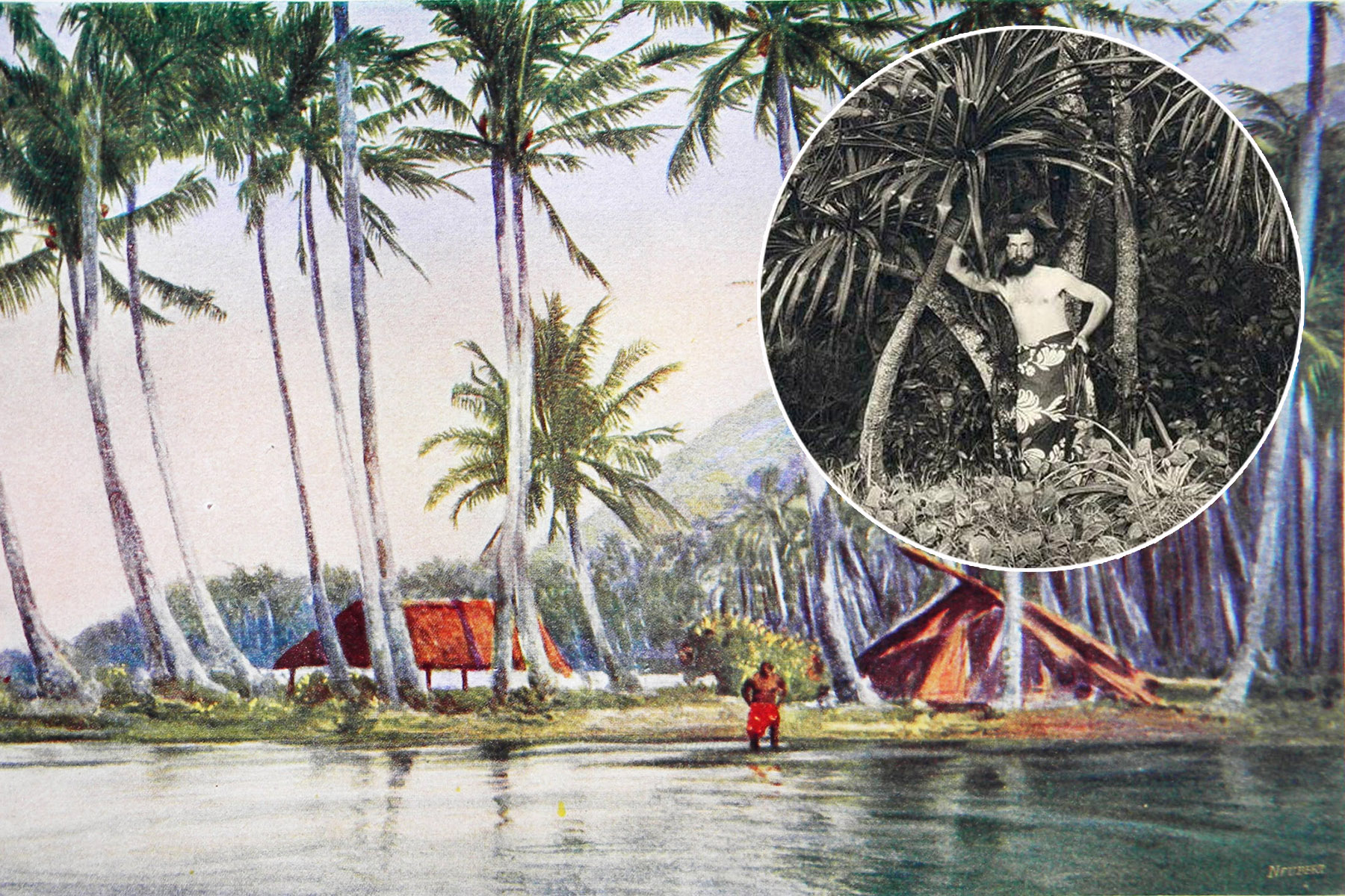 Tahitská pláž na počátku 20. století podle cestovatele Havlasy. Ve výřezu Milan Rastislav Štefánik.