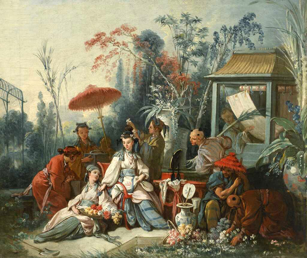 Fascinace orientální exotikou se promítla i do malířství. Plátno Čínská zahrada vytvořil v 18. století François Boucher