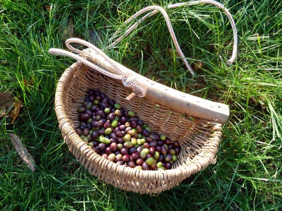 • Tradiční pomůcku, pletený košík, si sběrač obvykle uvazuje okolo pasu, aby měl volné ruce.