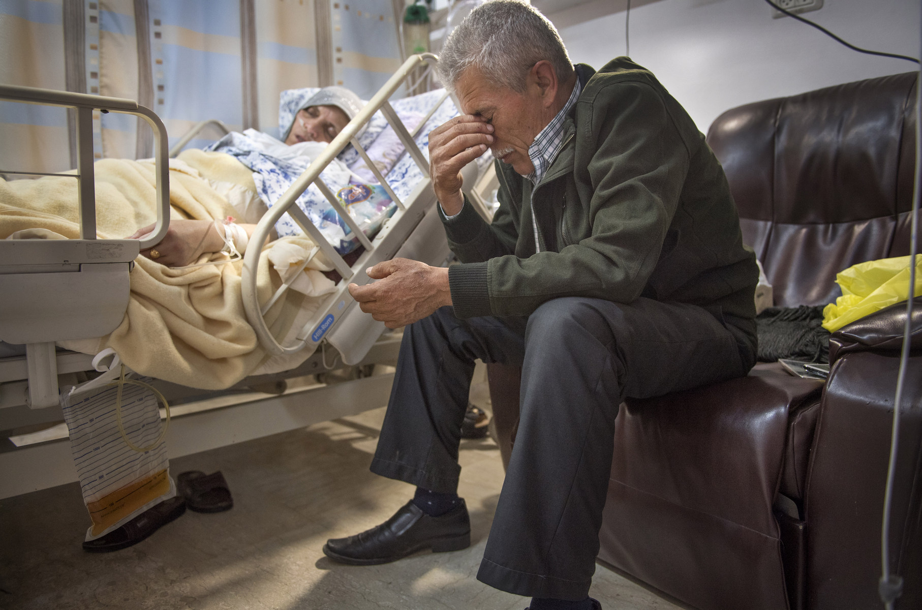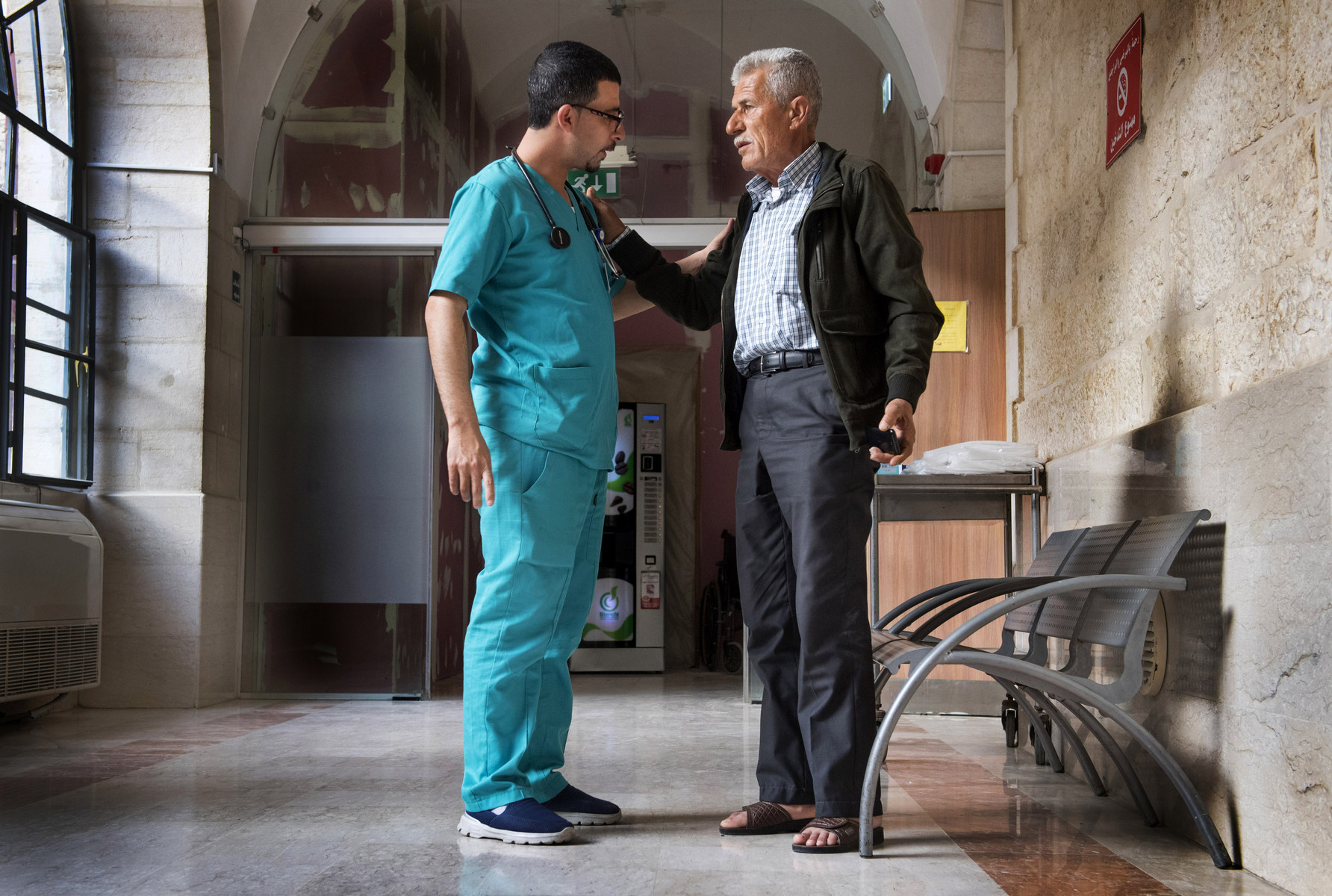 Lékař Motasem Sayes sděluje Jamalovi Abu Salahovi, že jeho manželka podlehla rakovině.