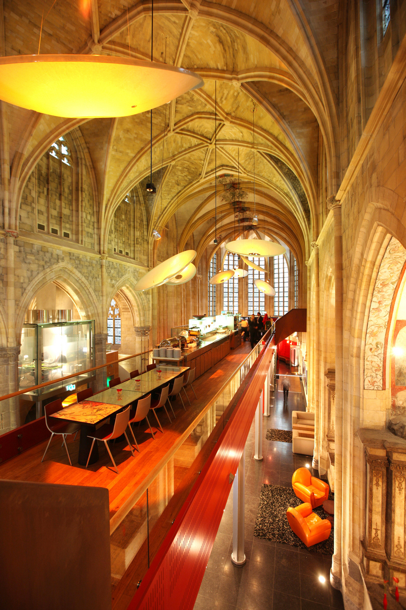 • Šedesátipokojový Kruisherenhotel Maastricht působí sice zvenčí téměř hrozivě, uvnitř však překvapí svou elegancí.