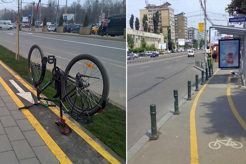 Cyklostezky v Bukurešti byly příliš úzké, stáčely se do pravých úhlů a stály na nich autobusové zastávky.