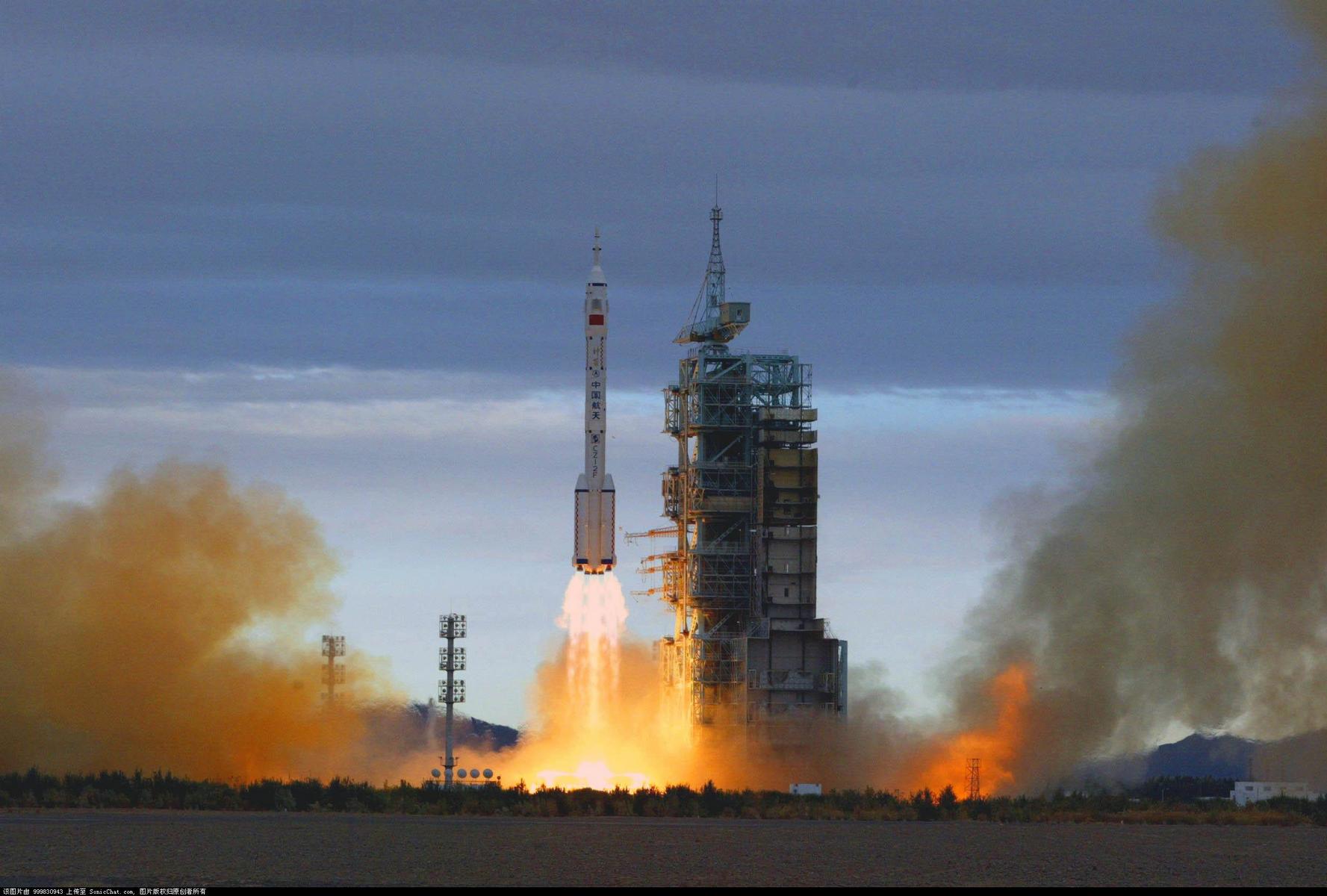 Start vesmírné lodi Šen-čou 6 z kosmodromu Ťiou-čchüan.