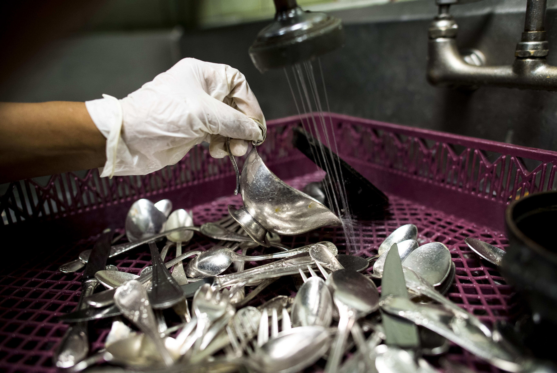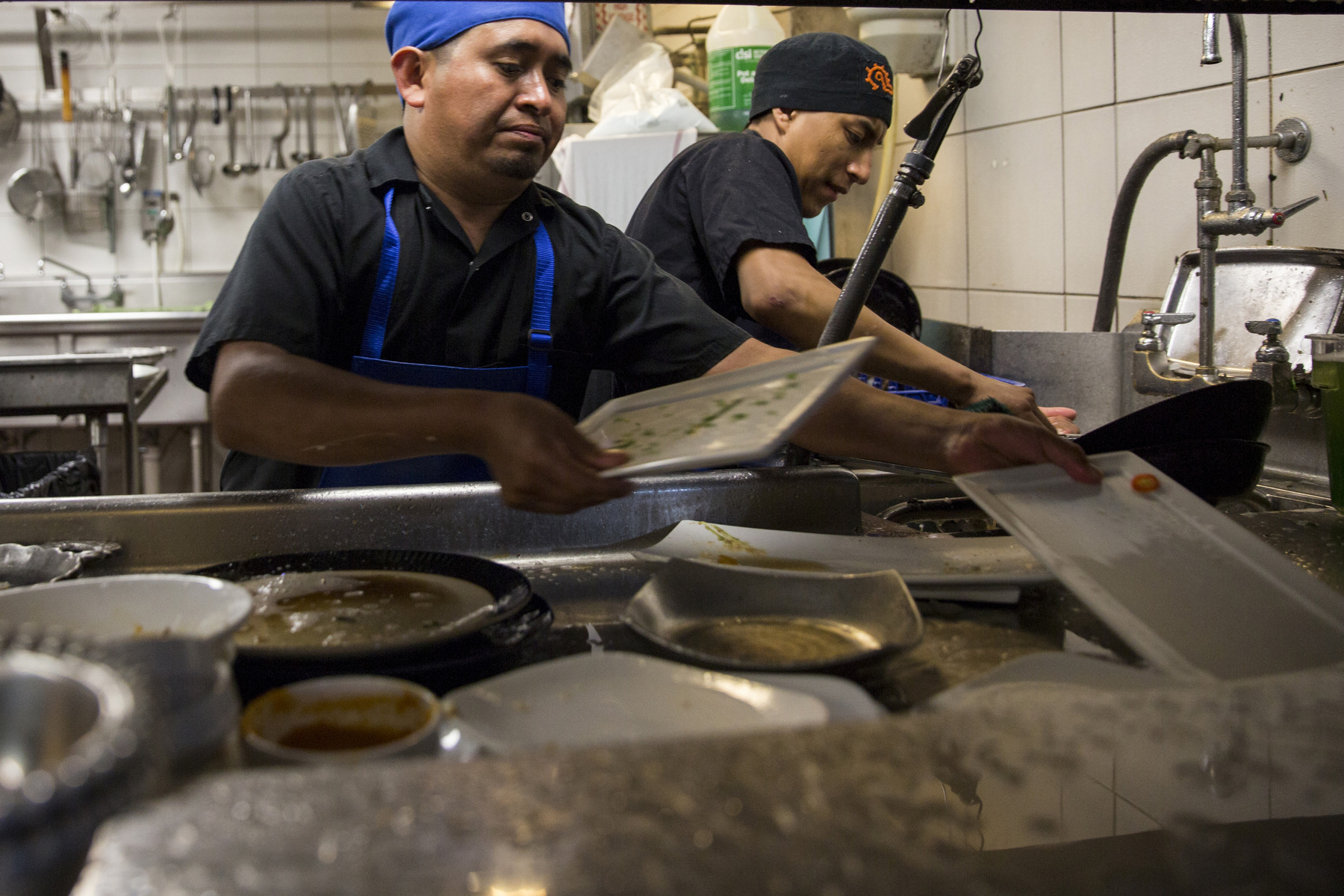 Esteban Soc a Joselino Aguilar se celou směnu nezastaví. Když zrovna nemyjí nádobí, vynášejí odpadky.