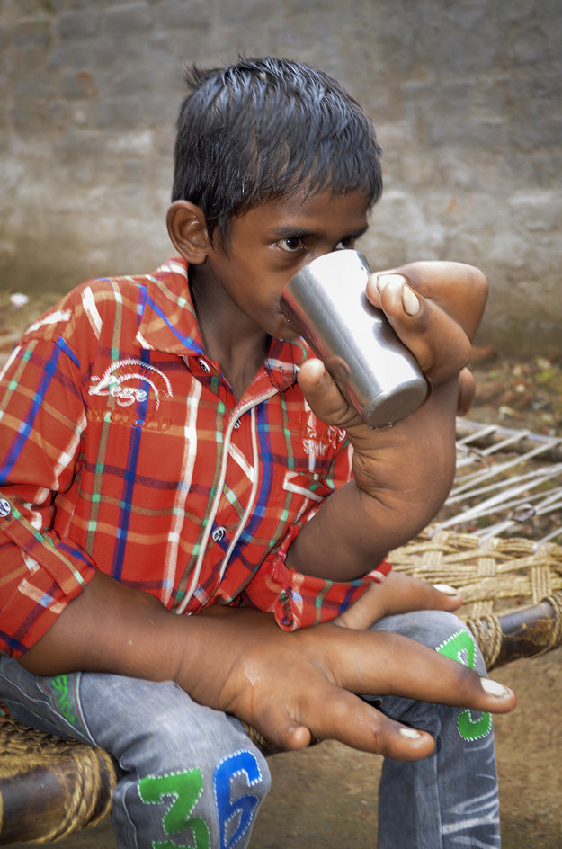 Ruce na obtíž: Osmiletý Ind má ruce, které váží 8 kilogramů
