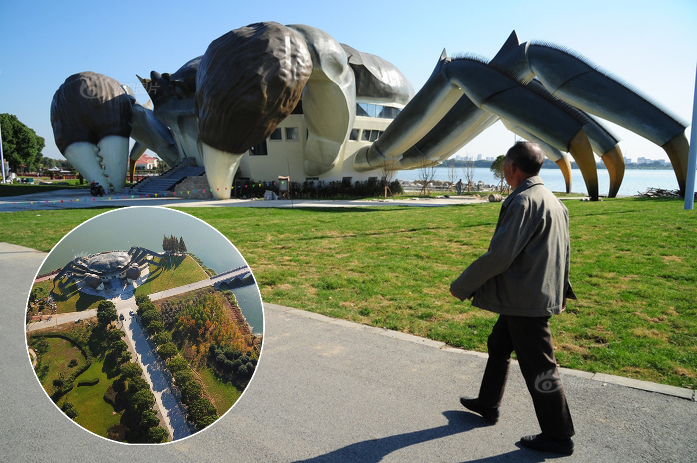 Na břehu jezera v čínském Kchun-šanu vyrostl 75 metrů velký krab