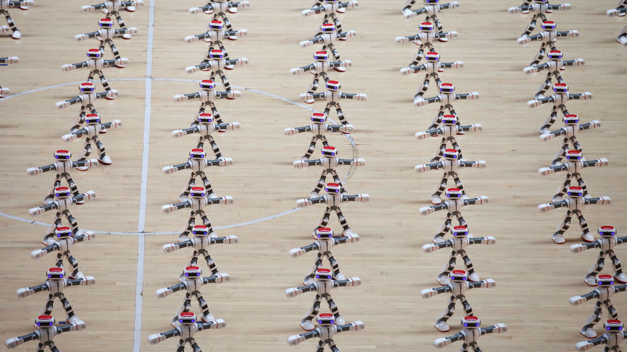 Rekordní tanec: V Číně si dali dostaveníčko tančící roboti