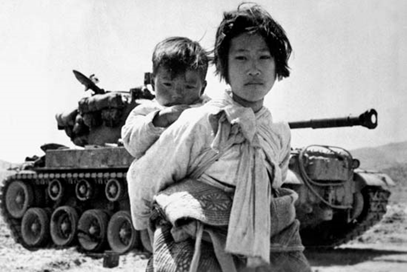 Během korejské války došlo k mnoha masakrům civilistů, přičemž jeden z nich dodnes v americké společnosti značně rezonuje. Zde váleční uprchlíci před tankem M-46