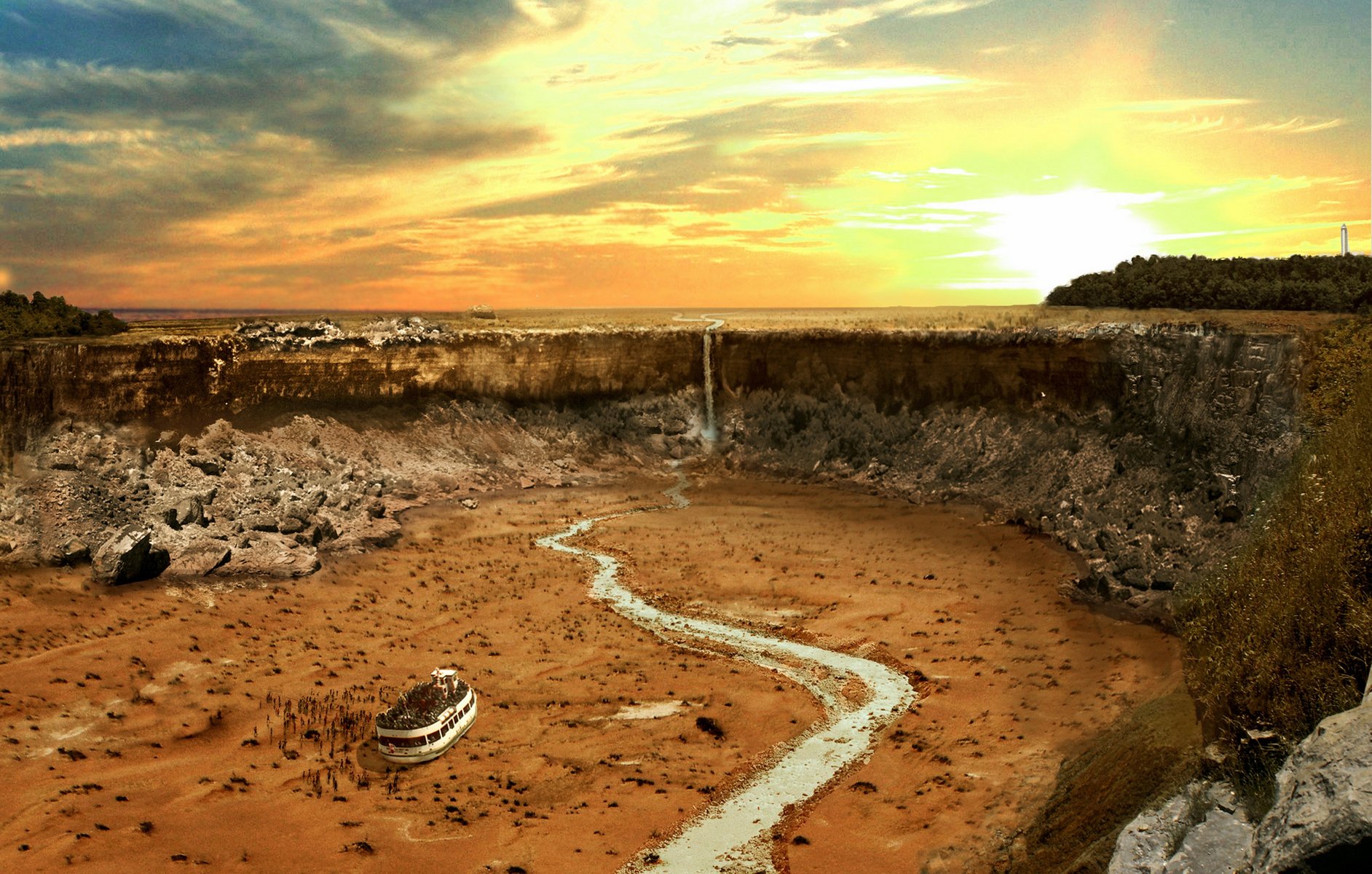 Jak by vypadaly Niagarské vodopády, kdyby v řece Svatého Vavřince došla voda? Reálnou fotografii vyretušoval grafik Joel Krebs.