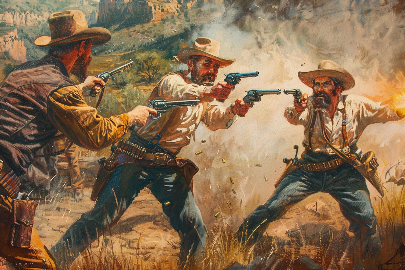 Při ozbrojených potyčkách na Divokém západě nešlo vždy jen o střet mezi strážci zákona a kriminálníky. (ilustrace: Midjourney AI, PDM 1.0)