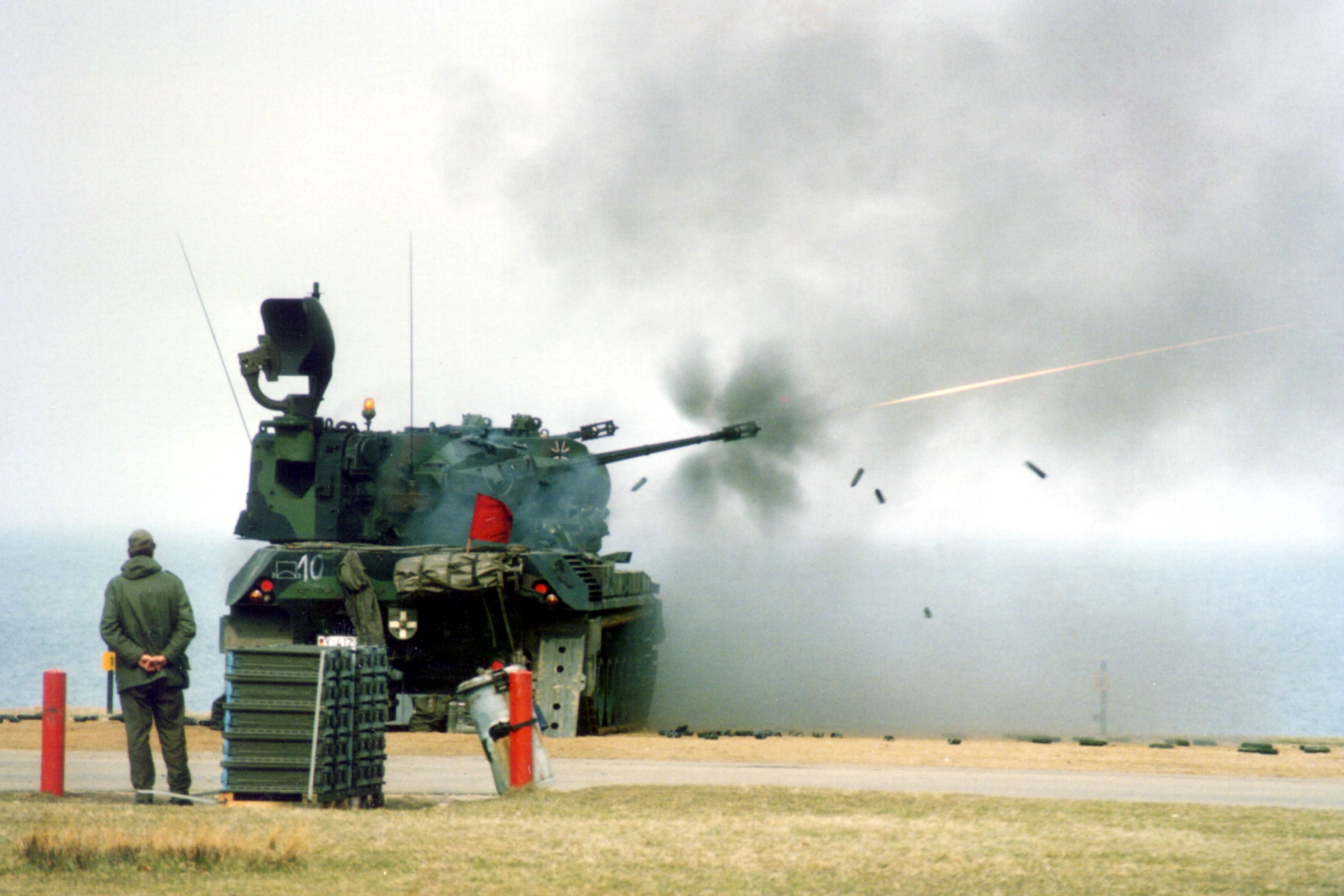 Protiletadlový systém Gepard během cvičných střeleb v Todendorfu, 1987
