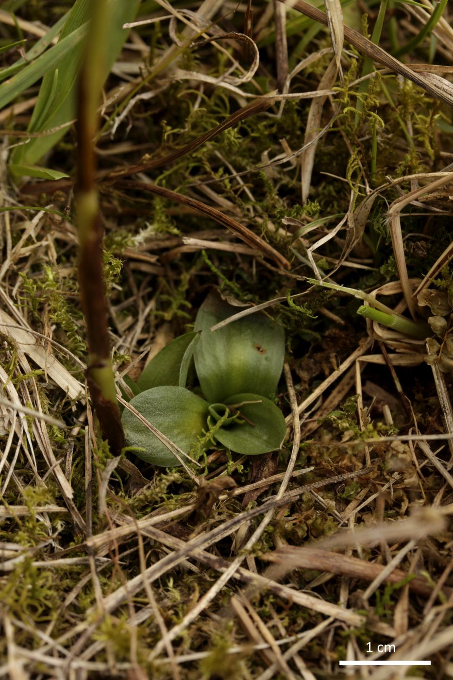 Mladá listová růžice švihlíku krutiklasu vyrůstající vedle odkvétajícího stvolu.