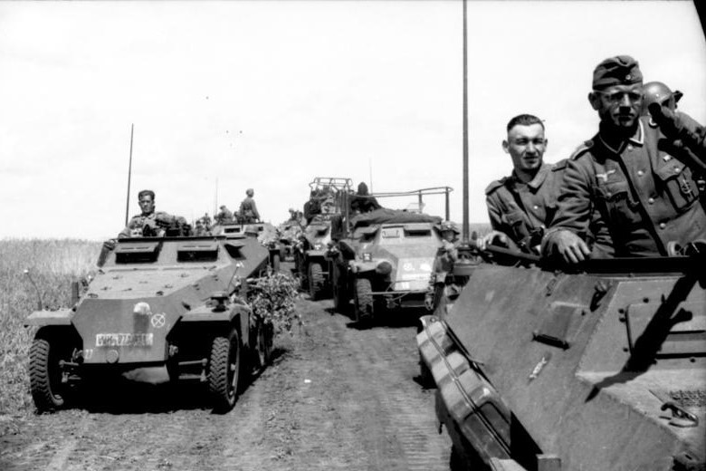 Do nejpoužívanějšího německého transportéru SdKfz 251 se kromě dvou členů osádky vešlo desetičlenné družstvo.