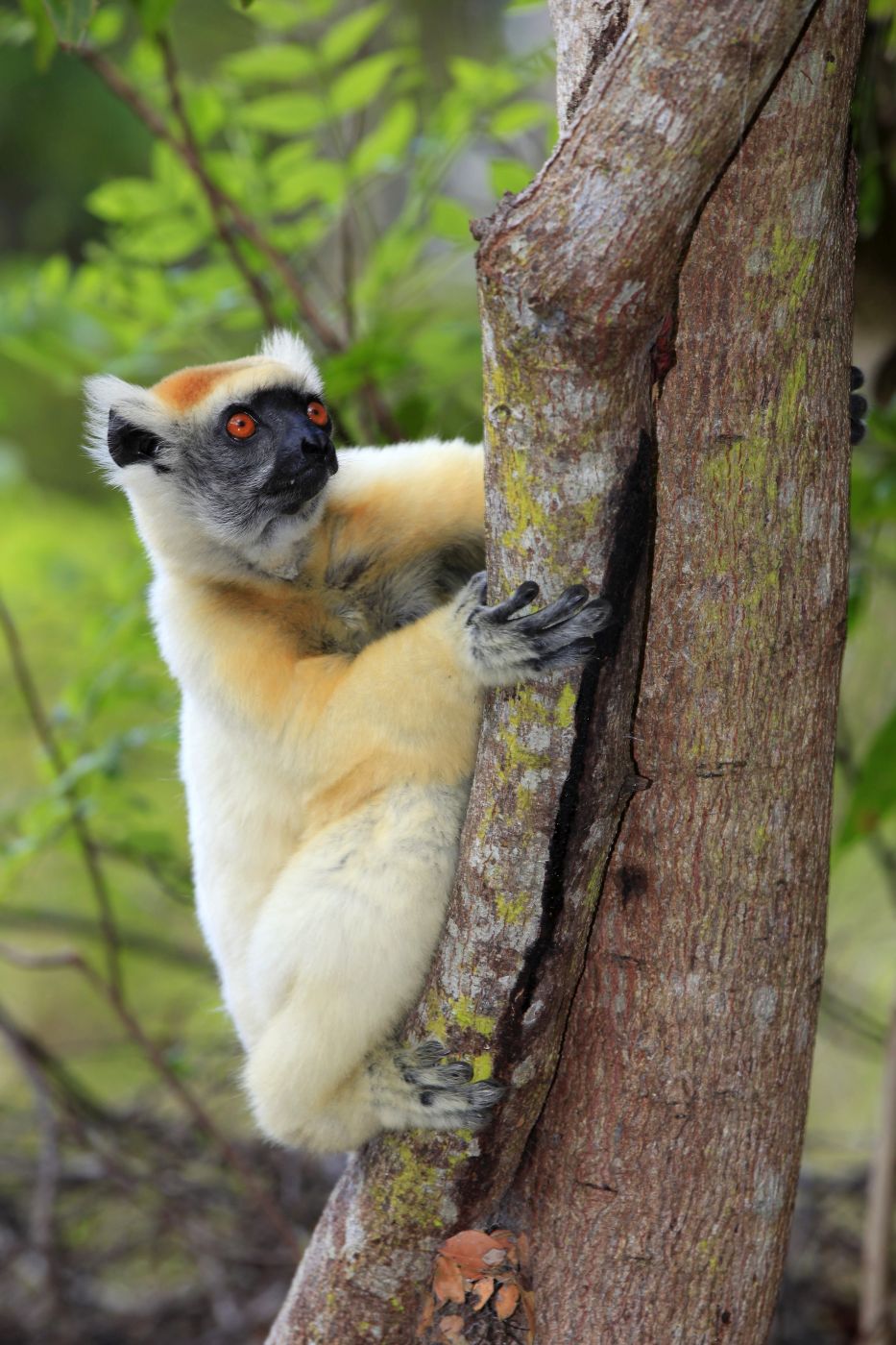 Sifakové zlatokorunkatí žijí v korunách stromů, kde si nejen hledají potravu, ale tráví zde i noci