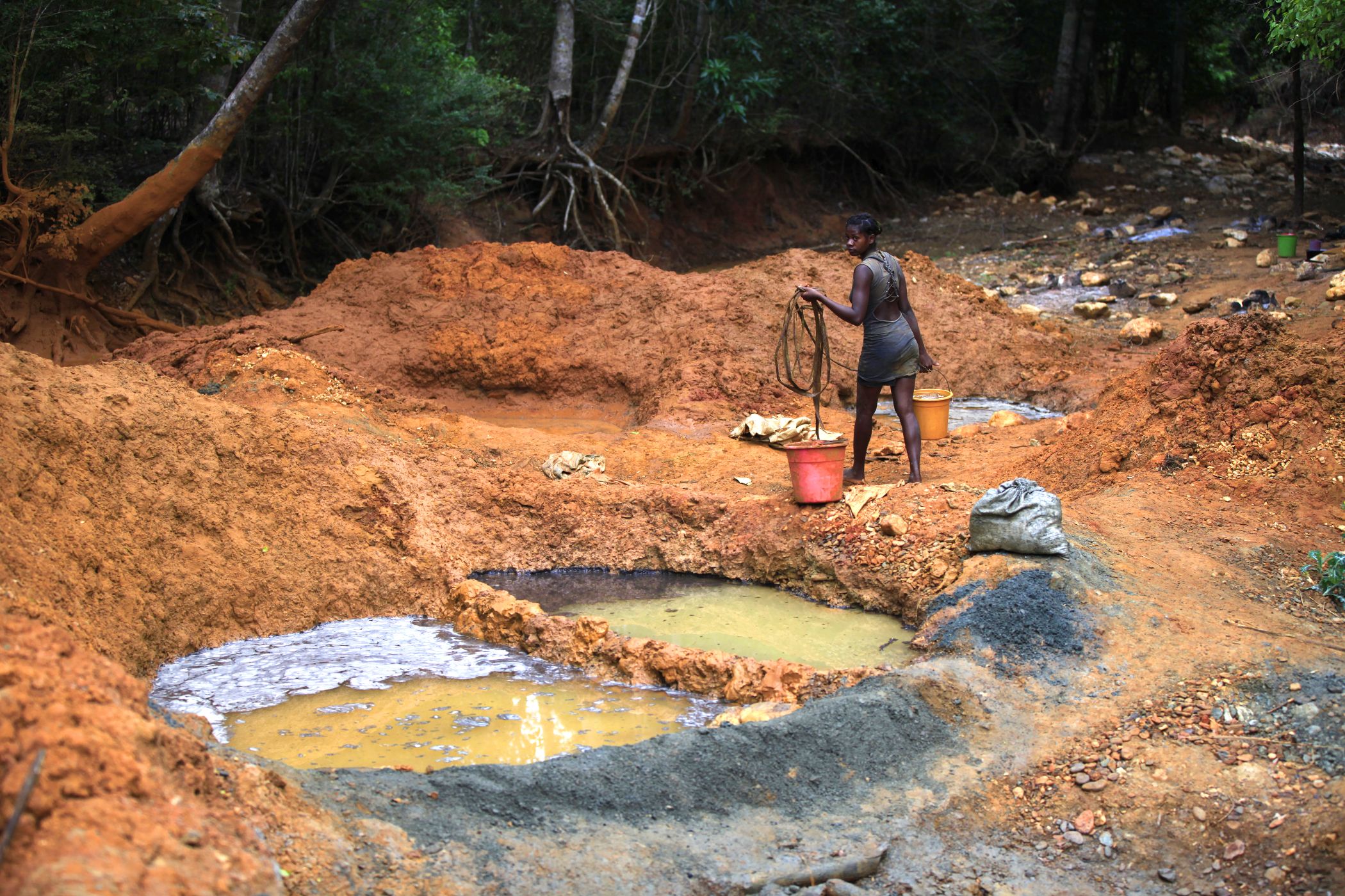 Zlatokopové hloubí v lese několikametrové jámy