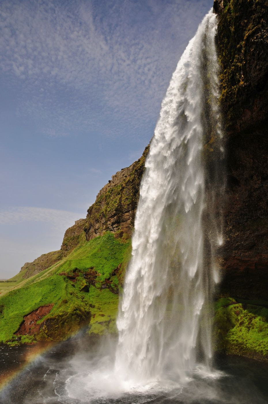 • Vodopád Seljalandsfoss lze obejít za masou hřmící padající vody.