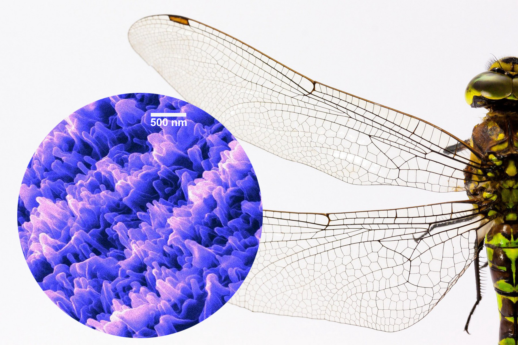Speciální nanostruktura povrchu křídla vážky si poradí s bakteriemi.