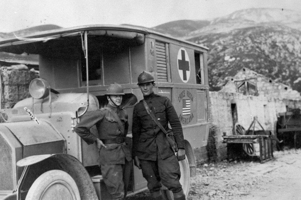 Podobnou sanitkou vozil raněné z fronty také Ernest Hemingway