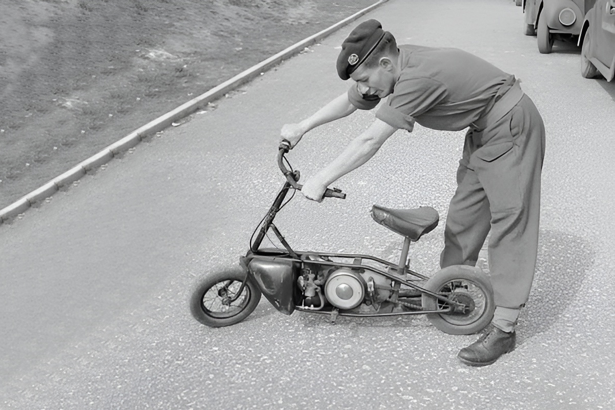 Parašutista vysazený za nepřátelskou linií se díky motorce rychle dostal z nebezpečné oblasti. (foto: Wikimedia Commons, Imperial War Museums, IWM Non Commercial Licence)