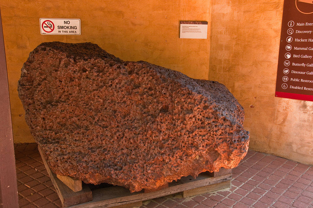 Hlavní část železného meteoritu Mundrabilla vážícího 12,4 tuny.